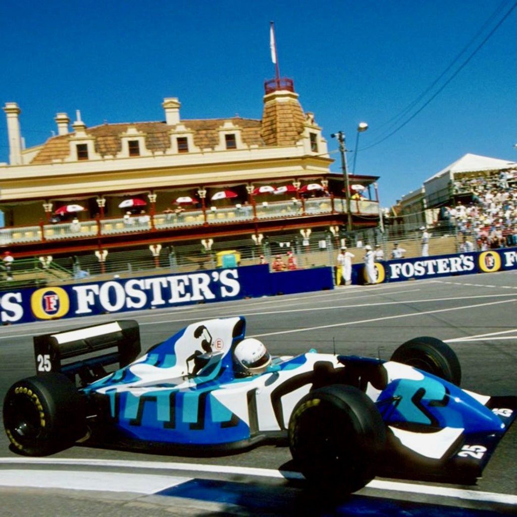Martin Brundle et la Ligier JS39 Art Car, dessinée par Hugo Pratt, au GP d’Australie 1993